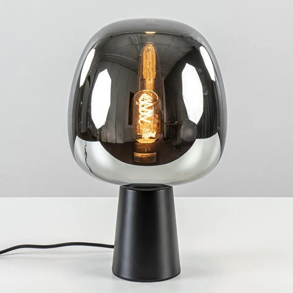 Mat zwarte tafellamp Mayson met smoke glazen kap>Straluma Hot