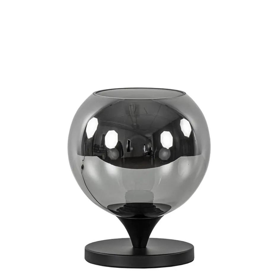 Mat zwarte tafellamp met smoke/titanium bol klein>Straluma New