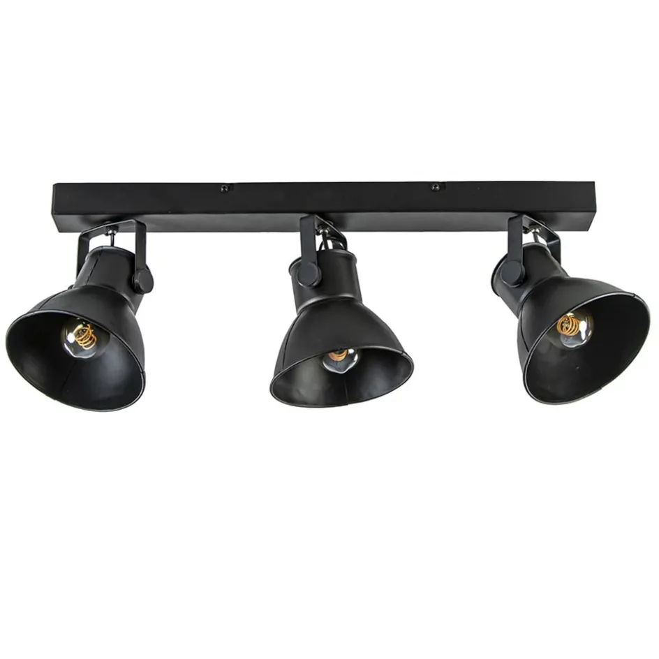 Ideaal voor in een hal of smalle kamer. Plafondlamp Eliano is voorzien van 3 kappen die los van elkaar zijn te verstellen. De kappen kunnen draaien en kantelen zodat u gemakkelijk de juiste lichtverspreiding kunt maken. De 3-lichts plafondspot is gemaakt van metaal en uitgevoerd in het mat zwart waardoor de plafondlamp een stoere robuuste look krijgt. Plafondlamp Eliano is mooi te combineren in een industriële of landelijke woonstijl. De 3-lichts plafondlamp van Light and Living wordt geleverd zonder lichtbron (3x E27).