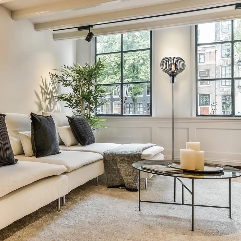 Modern landelijke vloerlamp mat zwart met draadkap>Straluma New