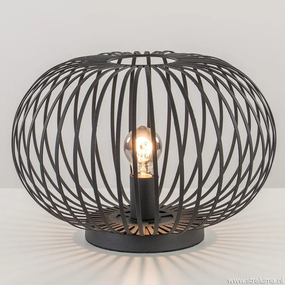 Moderne draad tafellamp rond mat zwart>Straluma New