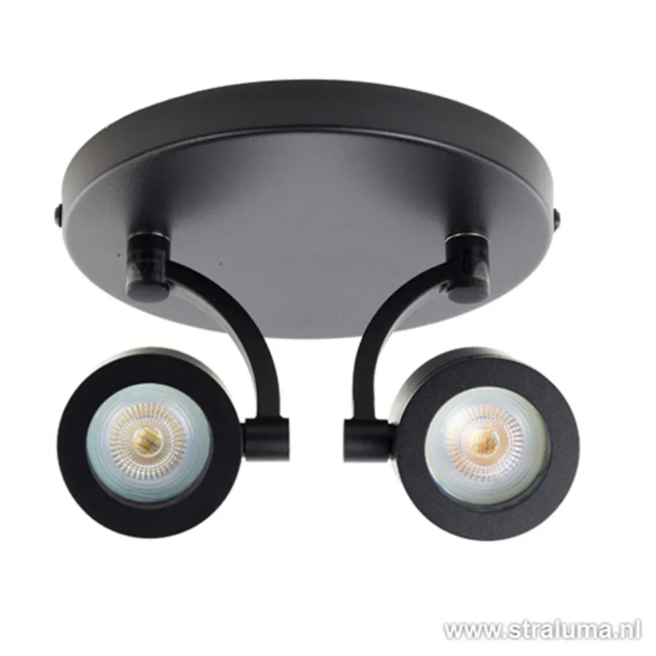 Moderne plafondspot mat zwart 2-lichts>Straluma