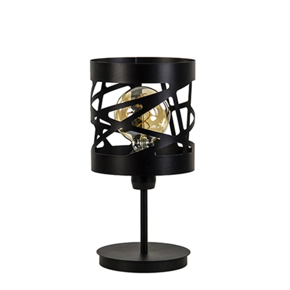 Dit kleine tafellampje is een leuke toevoeging aan het interieur. De metalen lamp past perfect in een modern of Scandinavisch interieur en staat leuk op een dressoir, bureau of bijzettafel. Het sfeerlampje heeft een opengewerkte metalen kap wat een speels lijnenspel geeft en de lamp een moderne en strakke look geeft. De metalen kap zit bevestigd op een zwarte voet en de lamp heeft een zwart snoer met schakelaar.