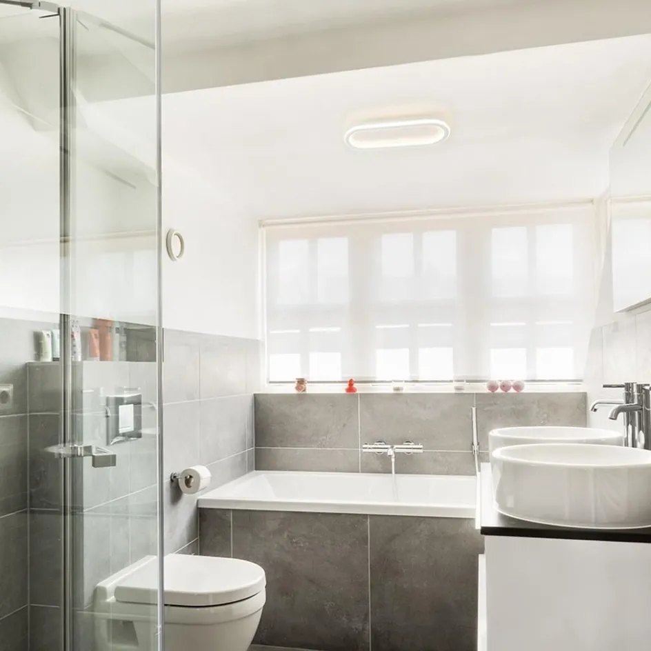 Deze LED plafondlamp is een ideale sfeermaker. De ovale plafondlamp is voorzien van LED verlichting met een 3-standen dim functie. Dit werkt gemakkelijk met de gewone wandschakelaar. Er is dus geen externe dimmer nodig. De plafondlamp is uitgevoerd in het wit en heeft een moderne look. Door de afwerking is de plafondlamp IP44 goedgekeurd waardoor deze ook in de badkamer kan worden toegepast. De LED lamp kan zowel als plafondlamp en wandlamp worden gemonteerd.