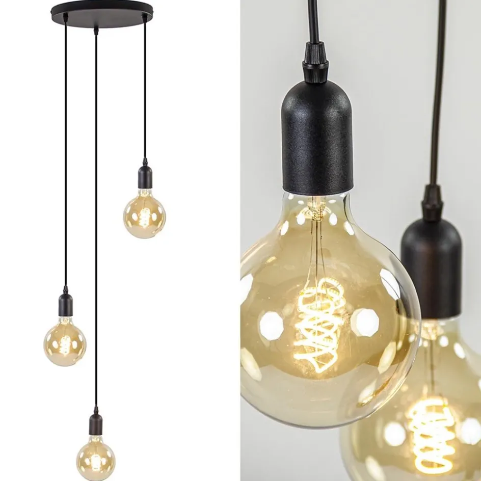 Een lichtbron hoeft niet meer verstopt te zitten in een kap. Lichtbronnen worden steeds sfeervoller en mogen gezien worden. Zo ook bij deze 3-lichts hanglamp. De sfeer wordt bepaald door de keuze in lichtbron, en daar is genoeg keuze in. De hanglamp is een gezellige sfeermaker en kan naar wens op hoogte worden opgehangen. De metalen fittingen hangen aan een zwart snoer en de lamp wordt aan het plafond bevestigd met een metalen ronde plaat. De lamp leent zich prima voor boven een salon- of bijzettafel en kan in verschillende woonstijlen worden gecombineerd.