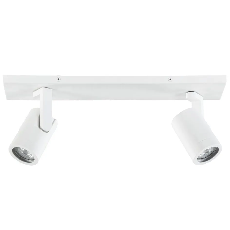 Een fijne plafondspot voor in een hal of slaapkamer. Deze moderne opbouwspot is volledig afgewerkt in mat wit wat de plafondlamp een moderne en strakke look geeft. De spots zijn zowel te kantelen als te draaien zodat u ze altijd naar de gewenste richting kunt laten verlichten. De ronde spotjes zijn voorzien van een afneembare ring die u er gemakkelijk afdraait zodat de lichtbron kan worden geplaatst en zitten bevestigd op een L-vormig pootje. De metalen plafondspot heeft een smalle en platte bevestiging die de strakke moderne look extra benadrukt. De 2-lichts witte opbouwspot wordt geleverd zonder lichtbronnen (2x GU10).