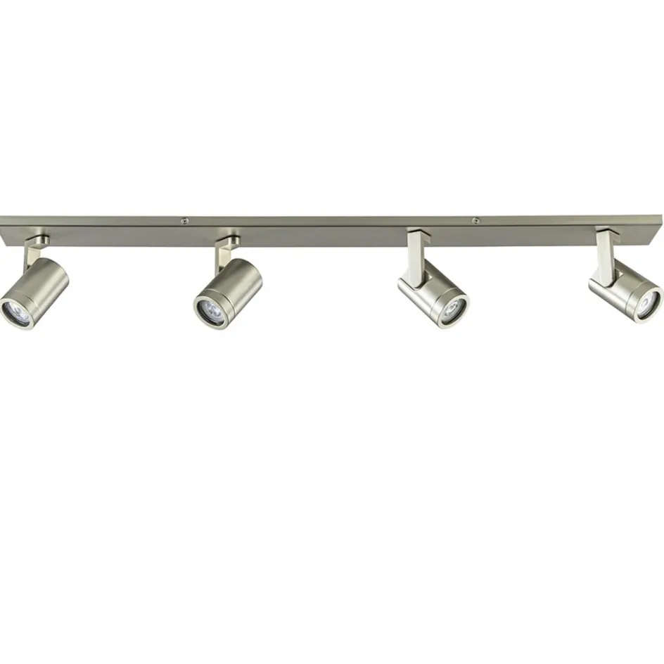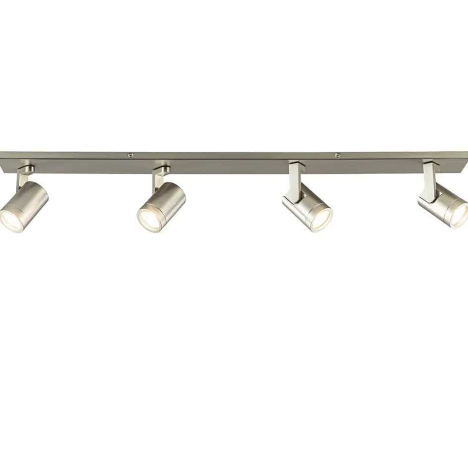 Ideaal voor in een lange smalle kamer of hal. Deze 4-lichts opbouwspot zorgt voor voldoende licht en doordat de spots zowel te kantelen als te draaien zijn, stelt u de spots gemakkelijk en snel naar de juiste richting. De ronde spots zijn voorzien van een afneembare ring zodat de lichtbron gemakkelijk geplaatst kan worden. De metalen kapjes zijn bevestigd op een L-vormig pootje die is bevestigd op de metalen plafondbalk. De plafondspot krijgt door de matte nikkel afwerking een strakke look die mooi past in diverse woonstijlen.