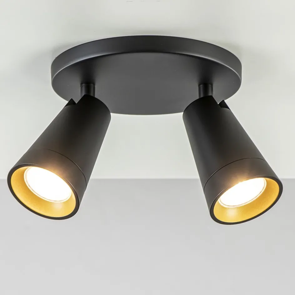 Perfect voor uw hal, overloop of slaapkamer. Deze 2-lichts opbouwspot is verstelbaar door de spots te draaien of kantelen zodat u deze altijd naar de juiste richting kunt plaatsen. De opbouwspot is volledig van metaal en voorzien van een mat zwarte finish. Leuk accent is de gouden binnenzijde van de ring. De combinatie van het zwart en goud maakt de opbouwspot ook prima geschikt voor diverse woonstijlen. U kunt de GU10 lichtbronnen gemakkelijk plaatsen door de bovenzijde van de spots los te draaien. De lichtbronnen zijn niet inbegrepen. De 2-lichts plafondlamp is dimbaar met de juiste dimmer (exclusief).