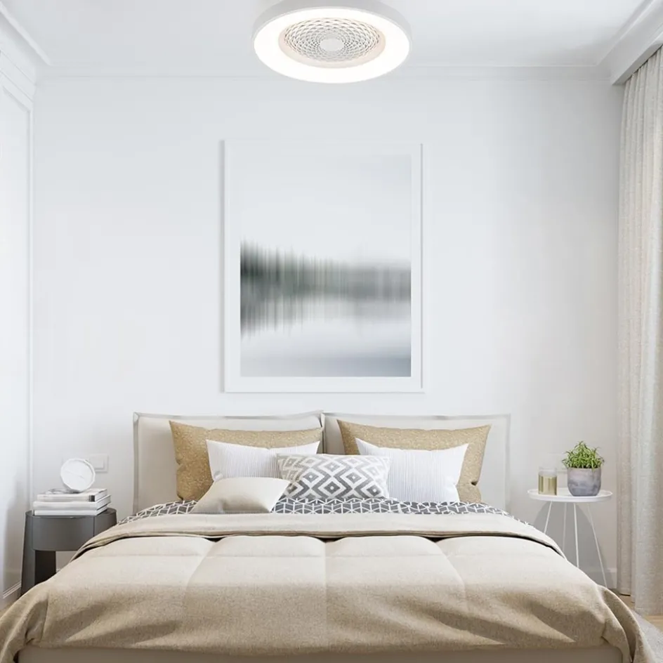 Een moderne plafondventilator met een strak design. Deze ronde ventilator bestaat uit twee delen, de buitenste ring is voorzien van geïntegreerd LED en de binnenste ring behuisd de ventilator. Het mooie is ook dat de ventilator en de lamp zijn te bedienen via de meegeleverde afstandsbediening, maar ook gemakkelijk met uw smartphone. Middels een app en bluetooth linkt u de ventilator gemakkelijk met uw smartphone en stelt u snel de gewenste snelheid van de ventilator in of dimt u de verlichting. De LED verlichting is in te stellen qua kleur en intensiteit, ideaal voor in de woonkamer of slaapkamer. De moderne plafondventilator met lamp heeft een zomer en een winter stand zodat u deze het hele jaar door kunt gebruiken.