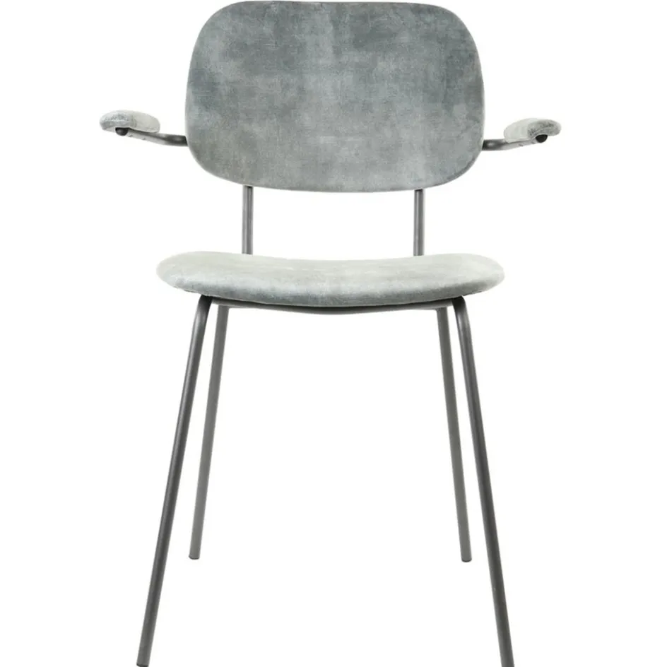 Dit trendy stoeltje maakt uw eetkamer helemaal af! Super leuk bij de robuuste houten tafels die we nu veel zien, maar met een slank zwart blad matcht deze eetkamerstoel ook perfect. De eettafelstoel heeft een fijn zitcomfort dat wordt versterkt door de armleuningen. Deze hebben een hoogte van 67 cm zodat ze gemakkelijk onder de tafel kunnen schuiven. De stoel heeft een velvet stoffen zitvlak, rugleuning en afwerking op de armleuning. De velvet stof is helemaal trendy en gemakkelijk te combineren in diverse woonstijlen. Het metalen frame loopt door in de pootjes wat een luchtig geheel geeft en is voorzien van een donker grijze poedercoating. De eetkamerstoel Emma van Light and Living is verkrijgbaar in twee kleuren, grijs en petrol.