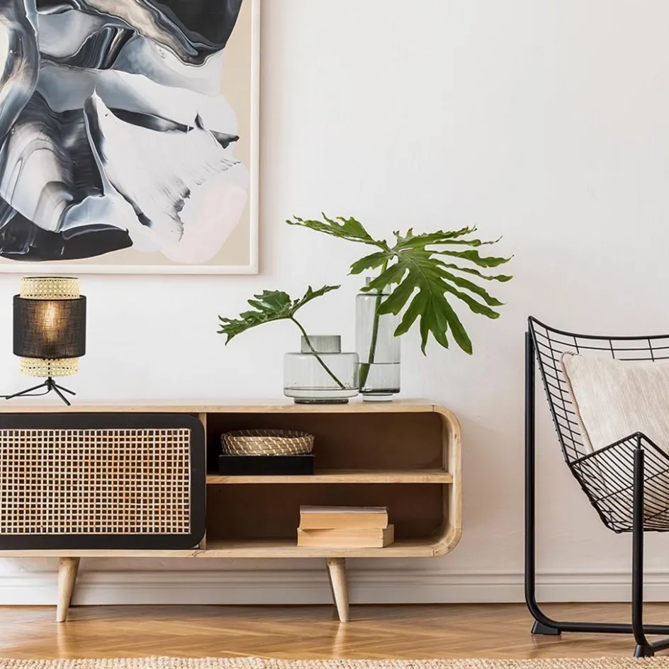 Een leuke sfeervolle toevoeging op een kast, bijzettafel of nachtkastje. Webbing is weer helemaal trendy in het interieur en dat is in deze tafellamp mooi verwerkt. De driepoot heeft een mat zwarte kunststof kap waar zowel boven als onder een deel webbing is verwerkt. Dit geeft de tafellamp die retro/vintage look, maar ook helemaal trendy. De driepoot tafellamp is voorzien van een zwart snoer met een lengte van 180 cm. De knipschakelaar bevindt zich op 65 cm in het snoer. Deze webbing tafellamp wordt geleverd zonder lichtbron.