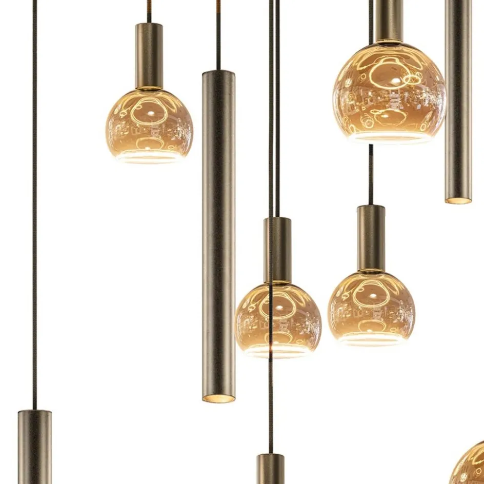 Deze prachtige hanglamp is een verrijking voor een vide of een ruimte met een hoog plafond. De hanglamp heeft een plafondplaat met een doorsnede van maar liefst 100 cm. Over de plaat zijn 12 lichtpunten verspreid die zijn onderverdeeld in 4 cilinders en 8 E27 fittingen, beide in de kleur platinum. De cilinders en fittingen zijn naar wens op hoogte te hangen, met een maximale hoogte van 350 cm. De platinum cilinders zorgen ervoor dat de ruimte onder de lamp goed wordt uitgelicht en de E27 fittingen zorgen met mooie decoratieve lichtbronnen voor diffuus licht. Zo komen zowel functie als sfeer bij elkaar en ontstaat er een prachtig schouwspel.