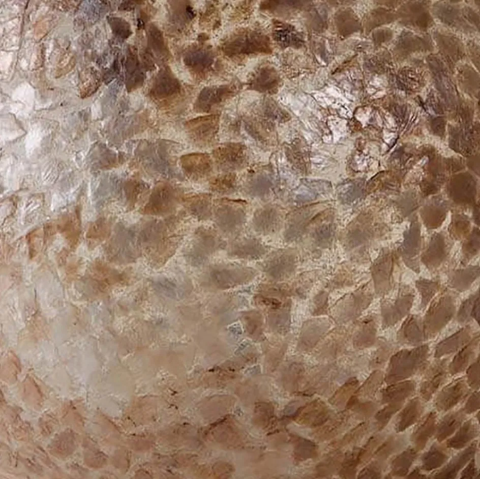 Sfeervolle vloerlamp voor in de woonkamer, slaapkamer of hal. Deze staande lamp is gemaakt van gebroken schelpen. Leuk om te zien wanneer hij niet brand en heel sfeervol als hij wel brand. Dit is geen vloerlamp om bij te lezen maar echt om een sfeer te creëren in de woonruimte. De kleuren zijn heel gemeleerd van creme-beige-bruin en goud, uitermate geschikt voor een beach-ibiza look of lifestyle interieur.