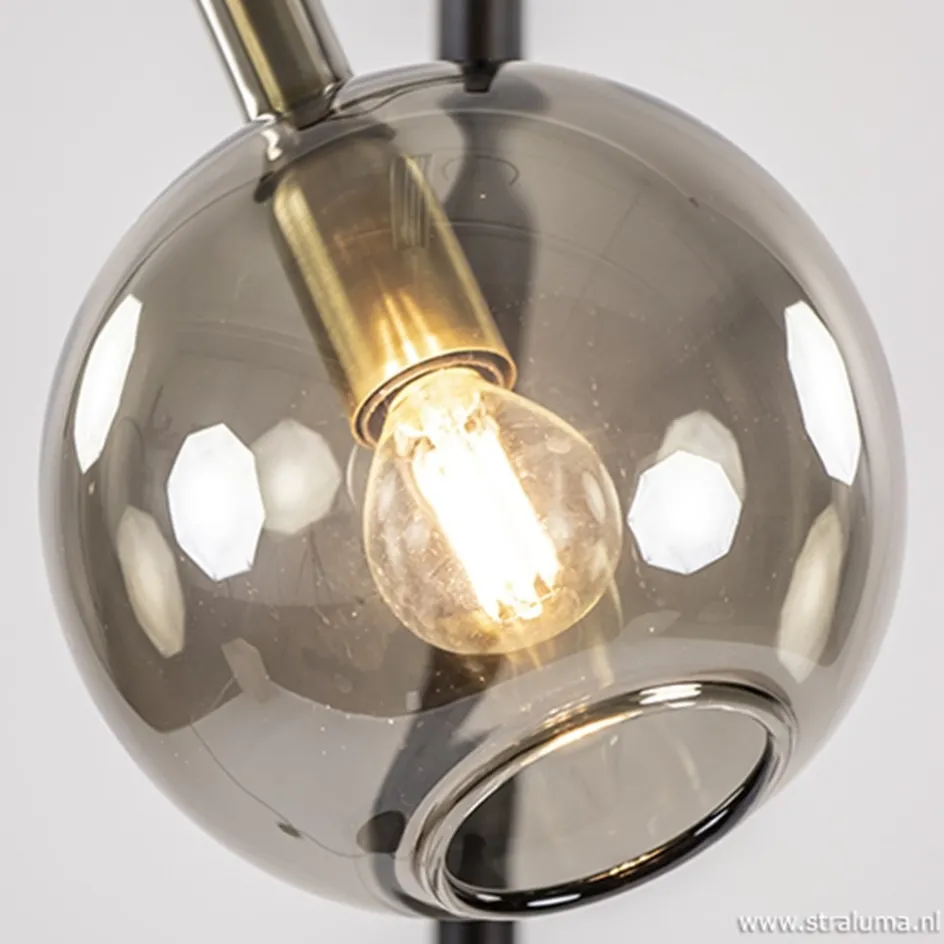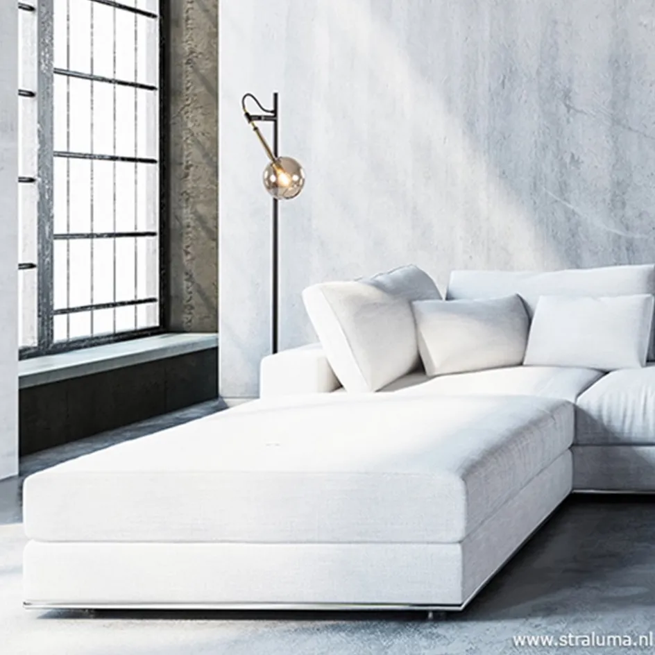 Zwart/messing vloerlamp met smoke glas>Straluma Hot
