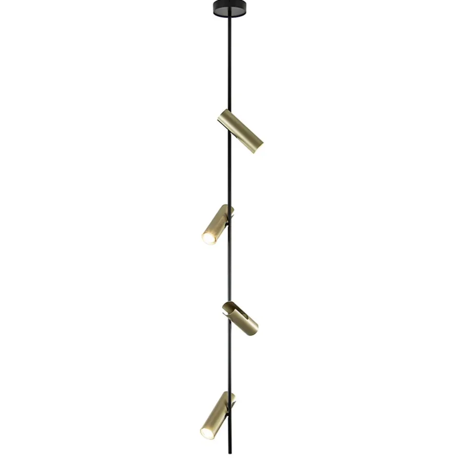 Een moderne plafondspot met een uniek design. De plafondlamp is volledig van metaal en uitgevoerd in mat zwart met goud. Het unieke design maakt dat de spots op verschillende manieren zijn te verstellen. Zo zijn deze te kantelen en te draaien waarbij de opbouwspot op iedere manier een andere vorm krijgt. De 4 spots zijn los van elkaar te verstellen, ideaal wanneer u iets wilt uitlichten of de lamp als extra sfeerlicht wilt plaatsen. De moderne plafondlamp heeft een hoogte van 178 cm, dit maakt de opbouwspot prima geschikt voor een ruimte met een hoog plafond of een vide. De zwart gouden plafondlamp wordt geleverd zonder lichtbronnen (4x GU10).